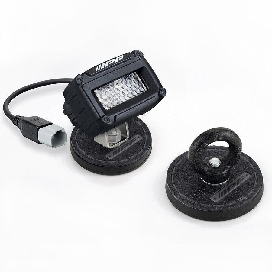 These versatile magnetic mounts are equipped with M8 bolts, so you can attach a variety of items such as an IPF working light (641WL-1) or M8 eye nuts. They have neodymium magnets which are the strongest type of permanent magnet available commercially, and they can be attached to variety of locations, including the vehicle body. The approximate load capacity is 5kg vertically and 10kg horizontally.
