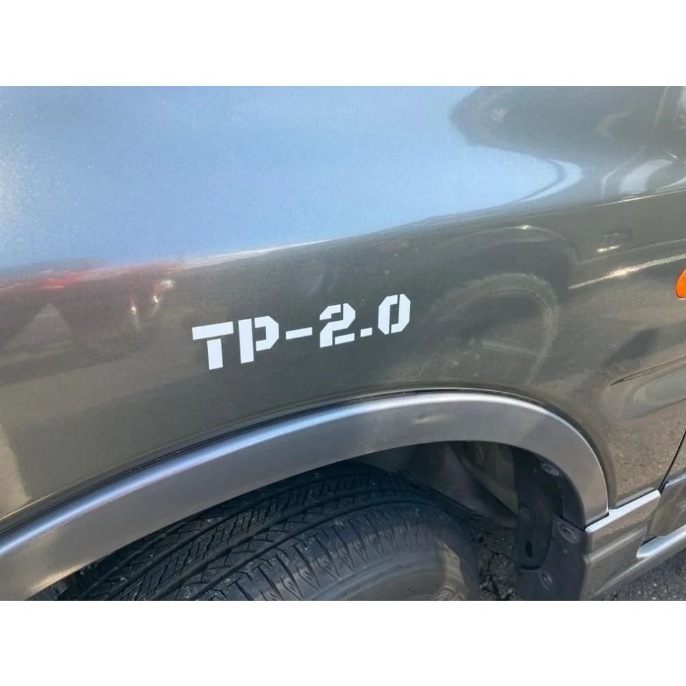 These are tire pressure display decals. TP-2.0 means Tire Pressure 2.0 kgf/cm². Military vehicles and other vehicles often have tire pressure indicators painted on their bodies for easy understanding. These stickers show the indication. Not just easy to understand, the cool design adds an accent. In our experience, these stickers stand out more than you might expect, and people often ask, "What is this?" They are stickers that are sure to attract attention to your vehicle.